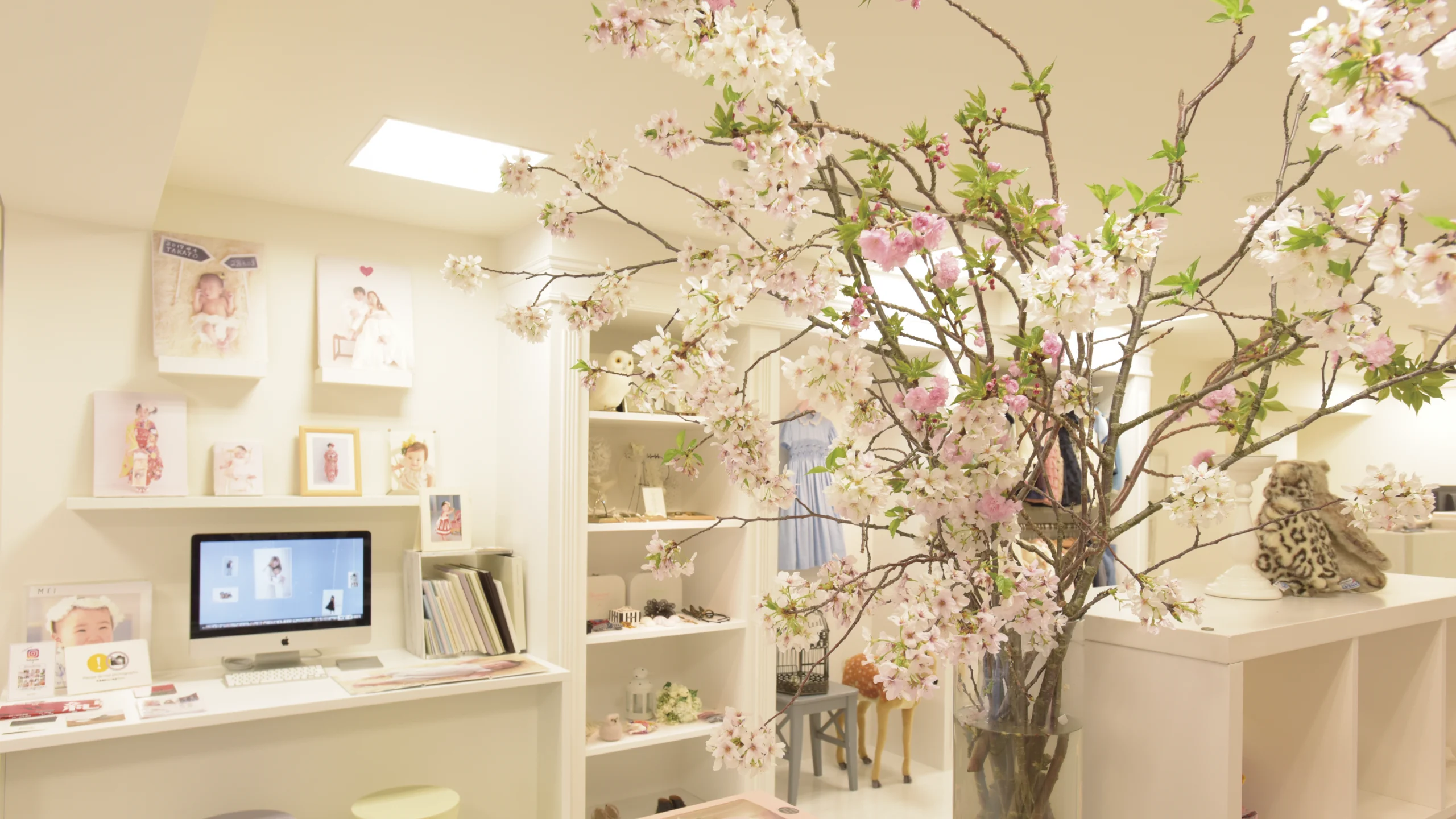 ⽩を基調とした、シャビーシックな雰囲気が⾃慢のコーロフィルムのスタジオ。⾊々なシチュエーションで